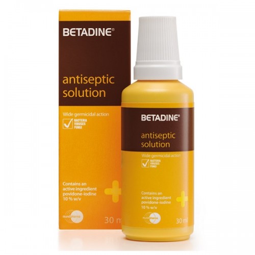 - Dung dịch sát khuẩn Betadine Antiseptic 10% 30ml diệt mầm bệnh ở da, vết thương và niêm mạc.
