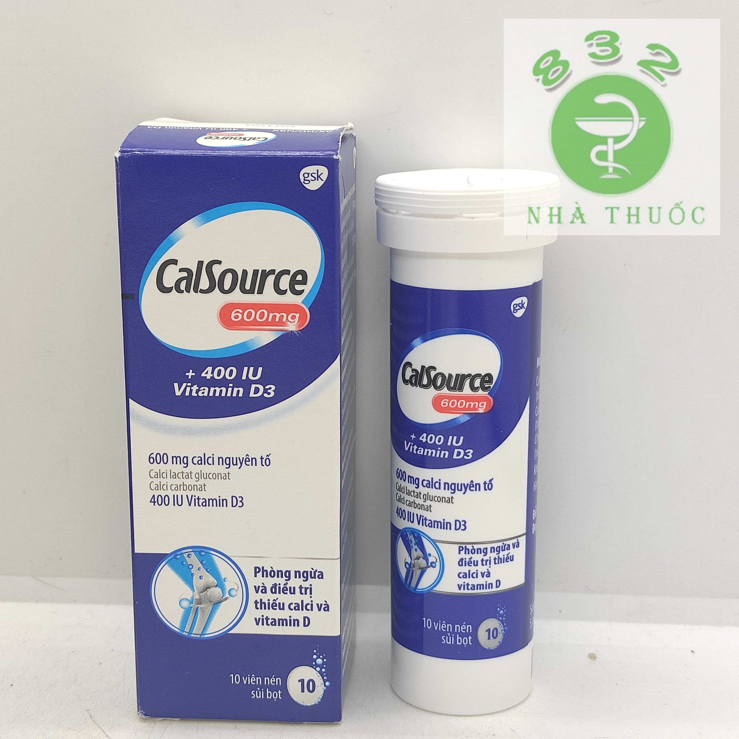 1358 mg calci lactat gluconat và 1050 mg calci carbonat (tương đương 600 mg calci nguyên tố); 4 mg cholecalciferol cô đặc “dạng bột” (tương đương với 400 IU cholecalciferol (vitamin D3)).