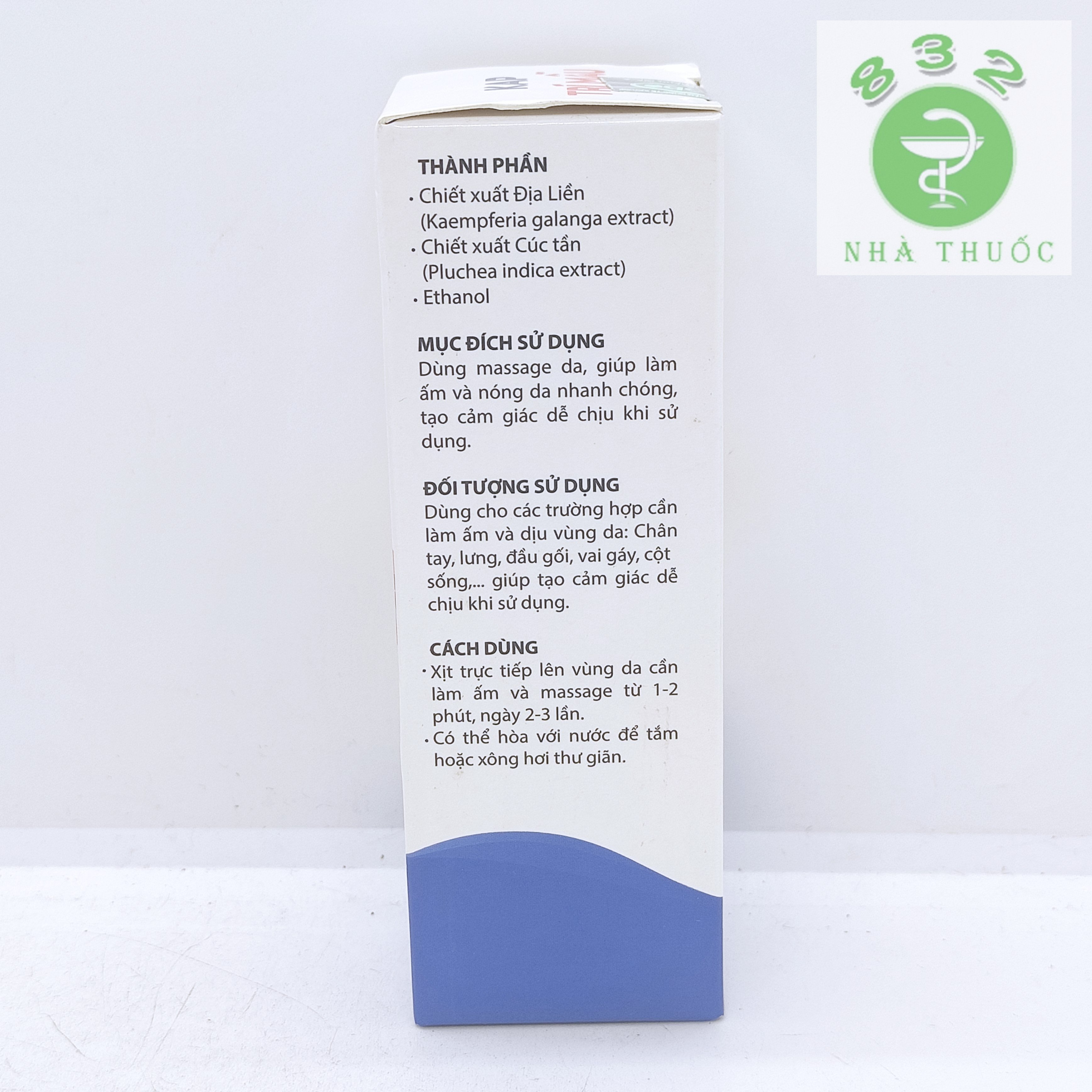 - Xịt trực tiếp lên vùng da cần làm ấm và massage từ 1 – 2 phút, ngày 2 – 3 lần.