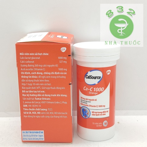 Viên nén sủi bọt Ca-C 1000 Sandoz Orange cung cấp vitamin C và calci nguyên tố với hàm lượng đủ để đáp ứng nhu cầu hàng ngày ở những giai đoạn có nhu cầu tăng cao.
