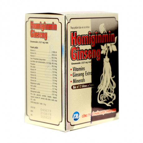 Sản phẩm Homiginmin ginseng có chứa thành phần cao nhân sâm có nguồn gốc từ Triều tiên, kết hợp với các vitamin và khoáng chất, có tác dụng bổ sung các dưỡng chất cần thiết cho cơ thể, đặc biệt là ở bệnh nhân suy nhược hoặc đang trong giai đoạn hồi phục bệnh