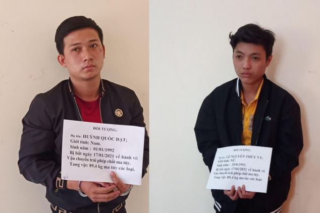 Ngày 27.1, Công an tỉnh Đồng Tháp cho biết đã khởi tố bị can, thực hiện lệnh bắt tạm giam Lê Nguyễn Thúy Vy (28 tuổi, ngụ Tiền Giang) và Huỳnh Quốc Đạt (29 tuổi, ngụ TP.HCM) để điều tra về hành vi vận chuyển trái phép chất ma túy.
