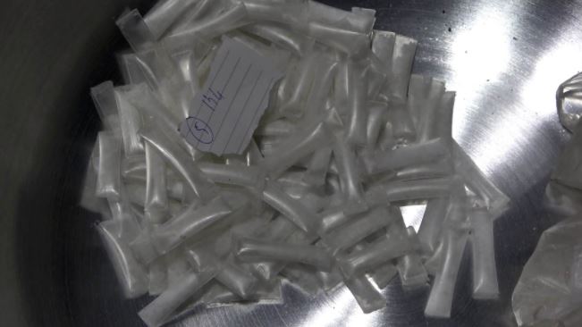 Tại phòng của Hùng, cảnh sát thu giữ 1 gói lớn và 6 túi nilon bên trong chứa tinh thể màu trắng nghi là ma túy đá…